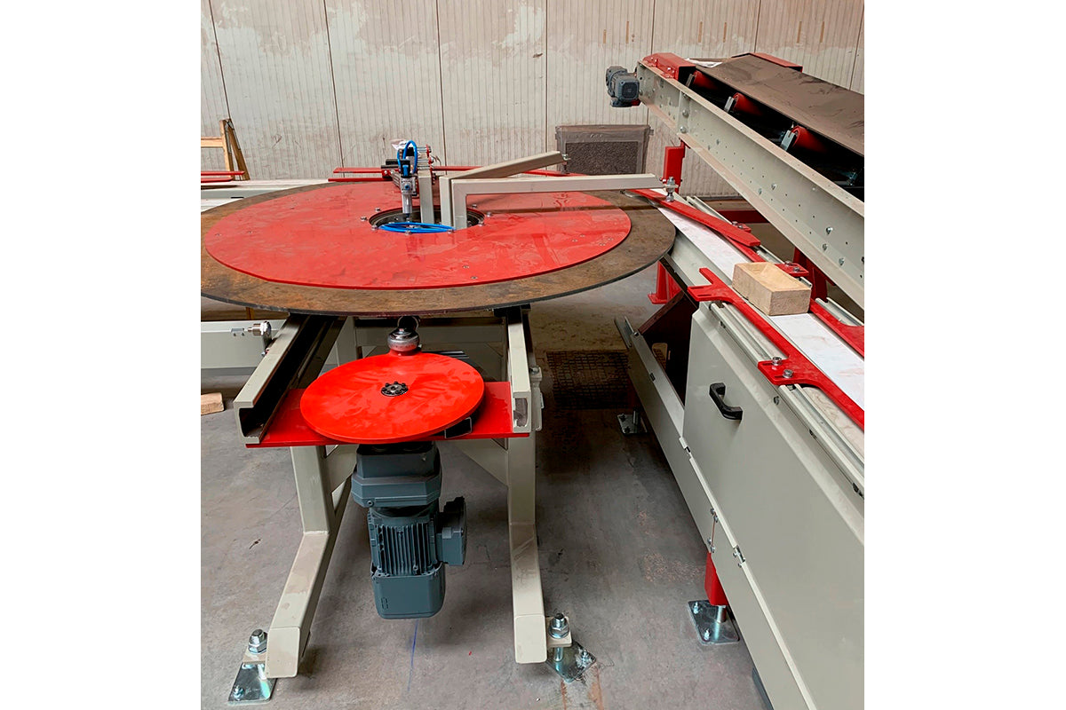 The turntable is typically used in conjunction with a line conveyor, from which the stones flow onto the turntable, which turns the feed 90° before continuing to an outlet line conveyor.